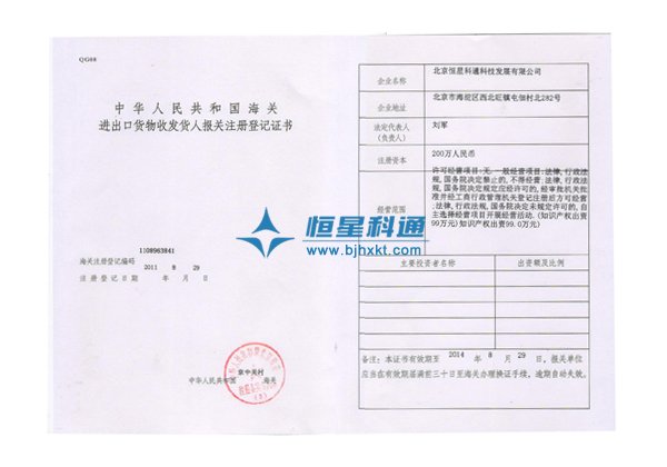 | 海關(guān)進出口貨物發(fā)貨人報關(guān)注冊登記證書 | 自理報檢單位備案登記證明書 |